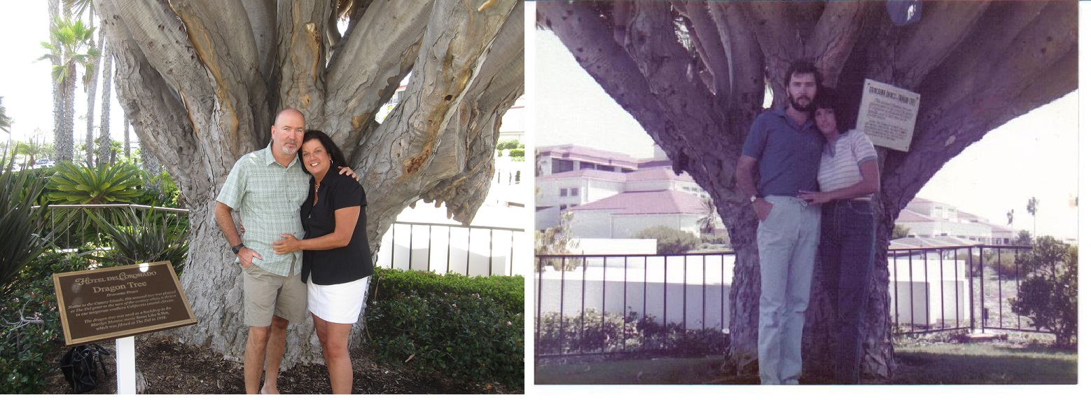The photos were taken at the Hotel Del Coronado in San Diego (on Coronado Island) where we spent our honeymoon in 1984. We didn’t stay at the “Hotel Del” as some shorten it for our 30th anniversary for budgetary reasons (a Bloody Mary runs $16.00 plus gratuity). It is a lovely, historic facility in a lovely part of the country and I’m glad we had the opportunity to stay there for our honeymoon (the movie, ‘Some Like It Hot’ was shot there).