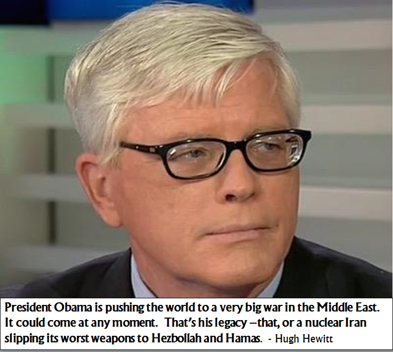 President Obama has been and is a train wreck, particularly in the area of foreign policy. Here’s law professor and radio talk show host Hugh Hewitt’s take on Obama: